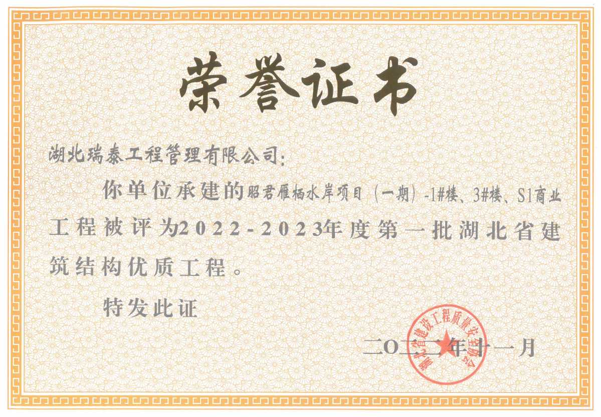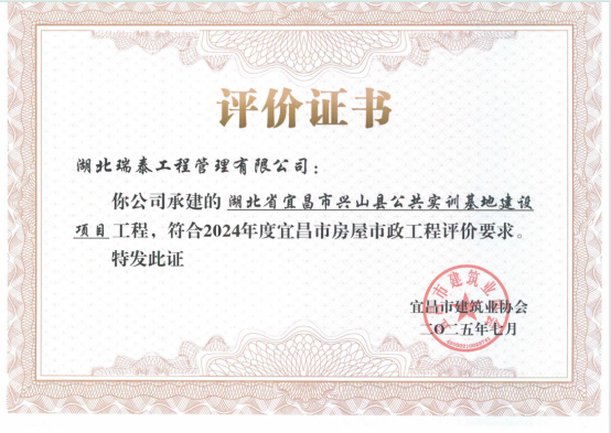 高岚实训基地项目获得2024年度宜昌市 “夷陵杯”证书奖牌